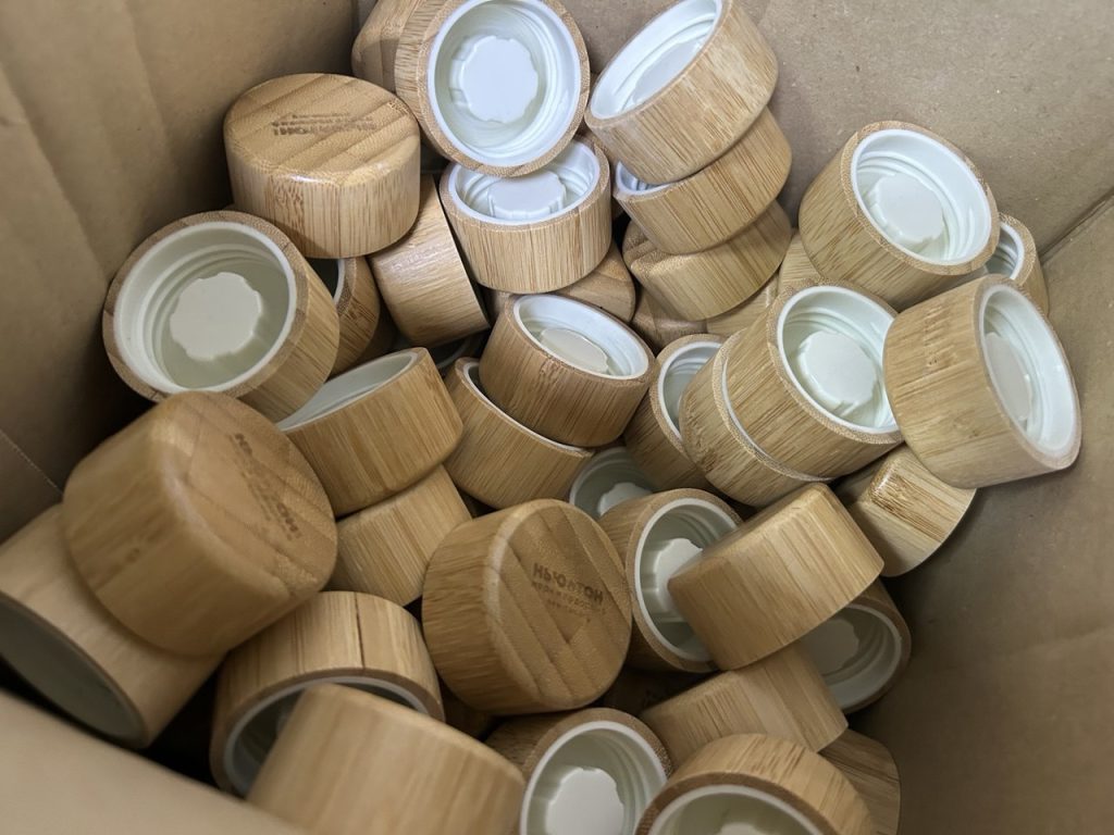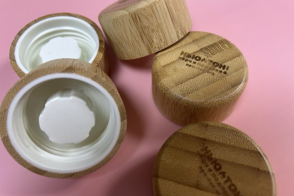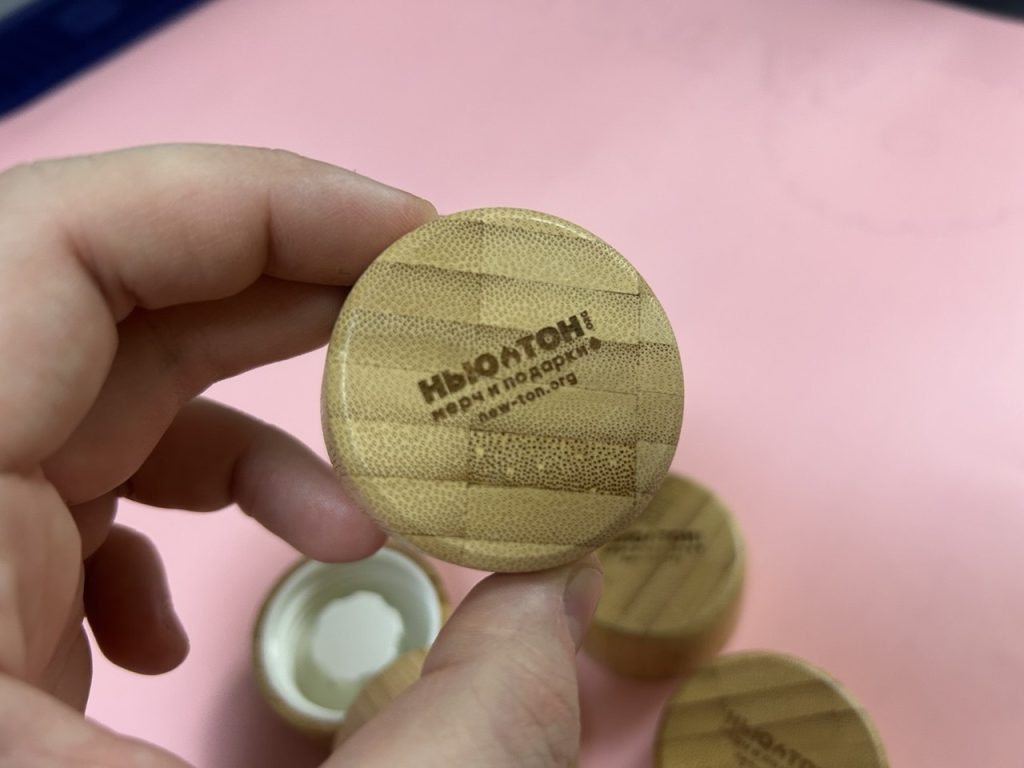Косметическая упаковка: Бамбуковые крышки для баночек и туб. Лазерная гравировка добавляет продукту статус «Organic» и выделяет его на полке.