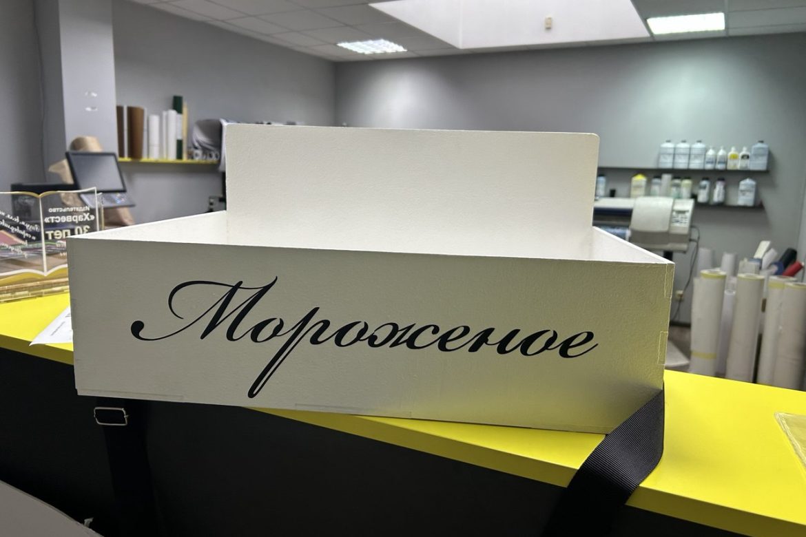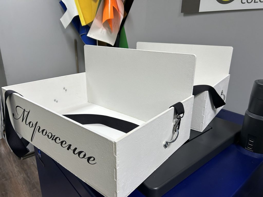 Нужны нестандартные короба для выездной торговли или презентации товаров? Мы изготовим легкие и прочные ящики с удобными ручками и ремнями для переноски, как наши белые лотки для продажи мороженого.